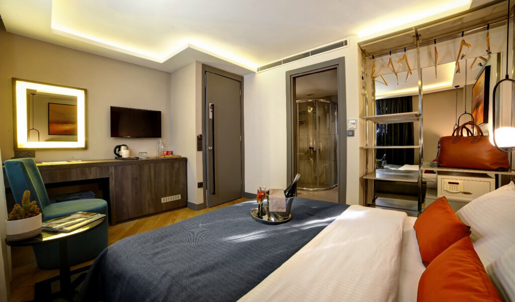 Standart Oda 22 m² olup, 1 adet 170x200 ortopedik yatak içermektedir. LED TV, minibar, ücretsiz çay-kahve ikramı, telefon, elektronik kasa, ergonomik sandalye, klima, tuvalet masası, LED aynalı makyaj masası, lüks banyo malzemeleri ve saç kurutma makinesi bulunmaktadır. Ortopedik yataklarımız, yatıştırıcı renkleri, zarif kişisel bakım ürünleri ve lezzetli kahvaltımız ile misafirlerimizin güne dinç ve enerjik başlamasını sağlar. Konforlu bir konaklama ve kaliteli bir uyku için gereken her şey odalarımızda bulunmaktadır.